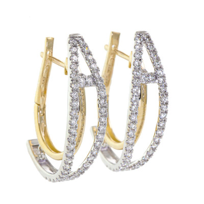 Diamond hoop earrings with 92 round Natural Diamonds totalling 1.05ct (Estimated grading: H-I SI-P1). 14 yellow gold hoop earring with 14ct white gold swivel. Weight: 6.1g. (New).