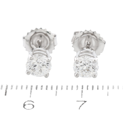 Diamond stud earrings with 2 round brilliant cut Natural Diamonds totalling 1.05ct (with GIA Dossier Reports graded as D VVS2# 1528471653, 3525381900 ). 18ct white gold. Weight: 1.2g. (New)