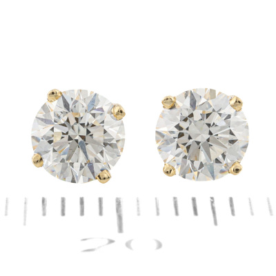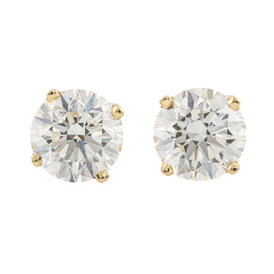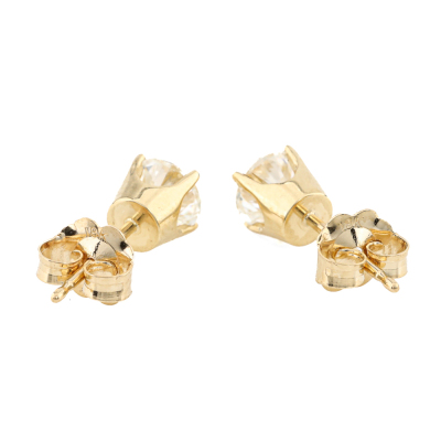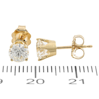 Diamond stud earrings with 2 round brilliant cut Natural Diamonds totalling 1.05ct (with GIA Dossier Reports graded as H SI1 #2524281150 & H SI2 #6525385742). 18ct yellow gold. Weight: 1.3g. (New)