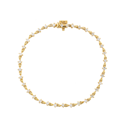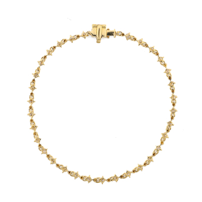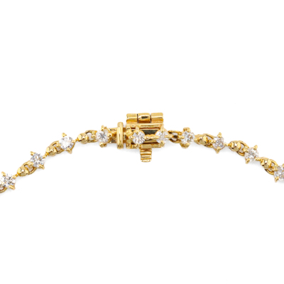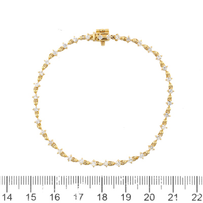 Diamond tennis bracelet with 35 round Natural Diamonds totalling approximately 1.05ct (Estimated grading: G-I P1-P2). 18ct yellow gold. Length: 18cm. Weight: 6.1g. (Pre-owned)