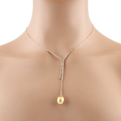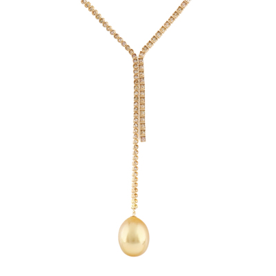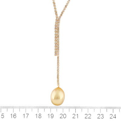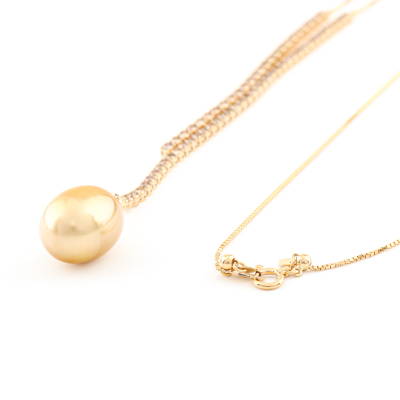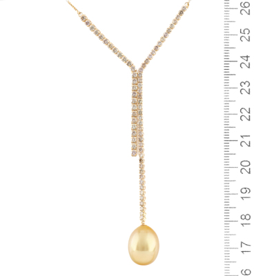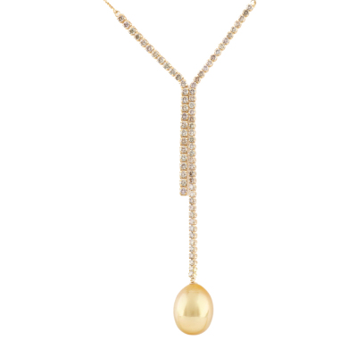 Pearl and Diamond pendant with a Golden South Sea Pearl approximately of 10.5mm and round Natural Diamonds totalling approximately 0.96ct (Estimated grading: K - Light Brown SI). 18ct yellow gold with 18ct yellow gold 70cm chain attached. Weight: 7.6g. (Pre-owned)