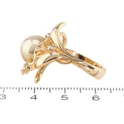 10.6mm Golden South Sea Pearl & Diamond Ring