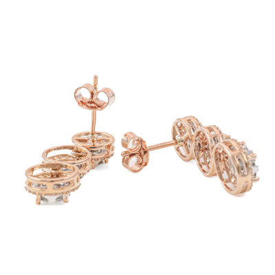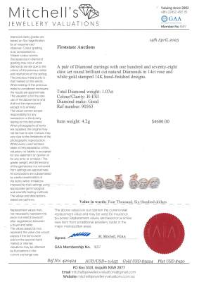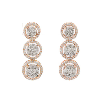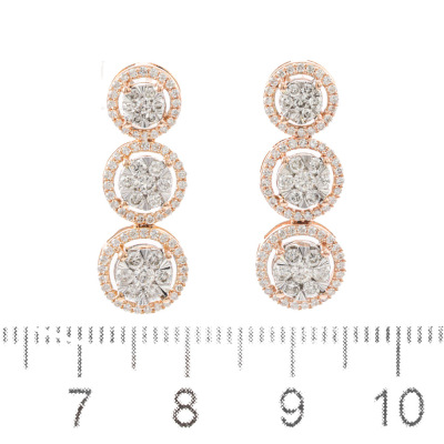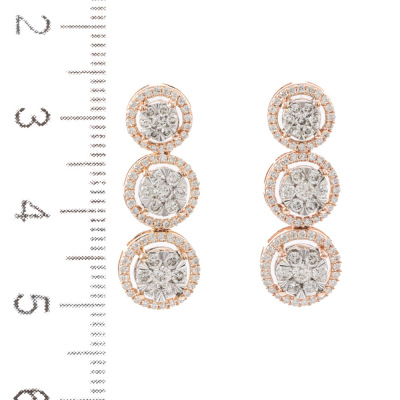 Diamond drop earrings with 178 round natural Diamonds totalling 1.07ct (Estimated grading: H-I SI). 14ct rose gold. Length: 2.3mm. Weight: 4.2g. With Valuation Certificate # 420424. (New)