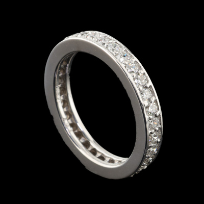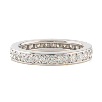 Diamond ring with round Natural Diamonds totalling 1.07ct (Estimated grading: H-I SI). 18ct white gold. Ring size K 3/4 - Ring resizing is not recommended. Band width: 3.2mm. Weight: 4.6g. (Pre-owned)