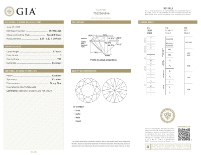 A loose round brilliant cut Natural Diamond of 1.07ct (with GIA Diamond Report graded as D VS1#7522364546)