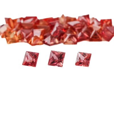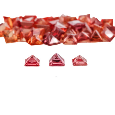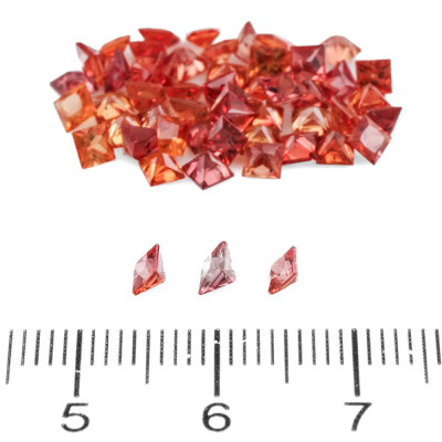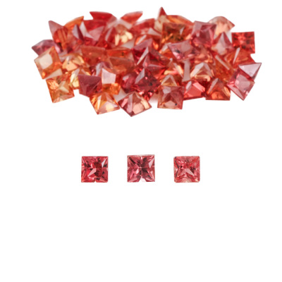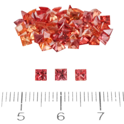 A loose parcel of princess cut orange to reddish orange Natural Sapphires totalling 10.89ct. Size 3mm. (Pre-owned)
