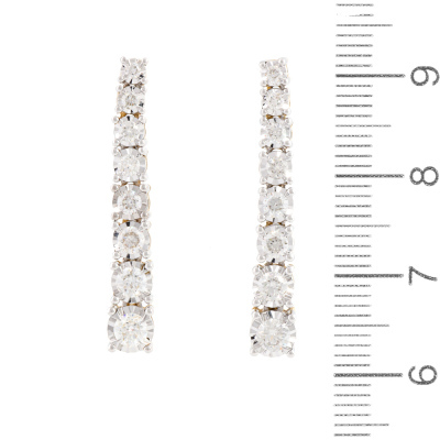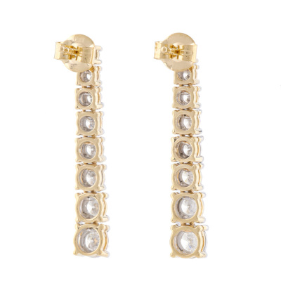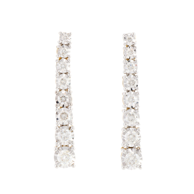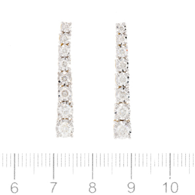 Diamond drop earrings with 16 graduated round Natural Diamonds totalling 1.08ct (Estimated grading: HIJ SI). 14ct yellow gold with white rhodium plated claw setting. Length: 2.9cm