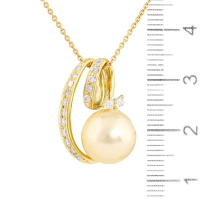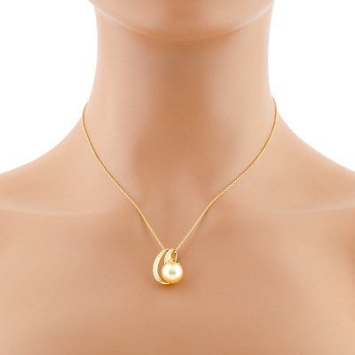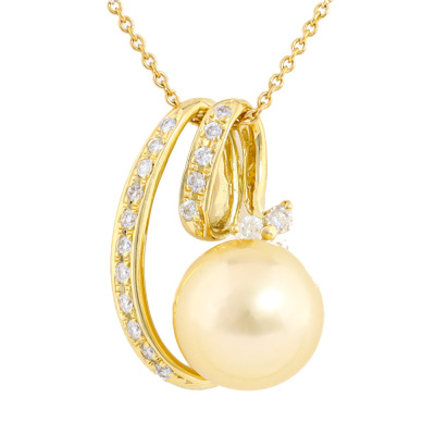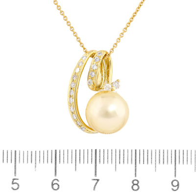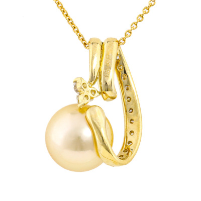 Pearl and Diamond pendant with South Sea Pearl of 10.8mm and round Natural Diamonds totalling 0.30ct (Estimated grading: G-H SI-P1). 18ct yellow gold with 42cm 18ct yellow gold chain. Weight: 6.5g. (Pre-owned)