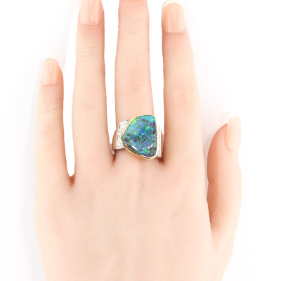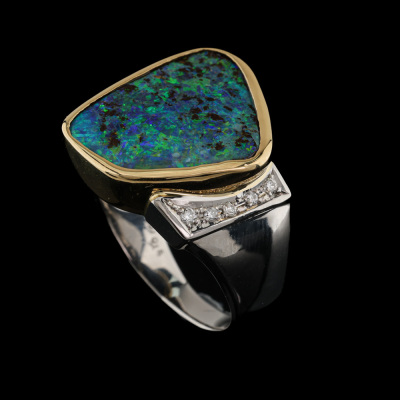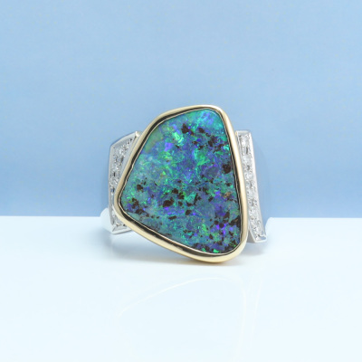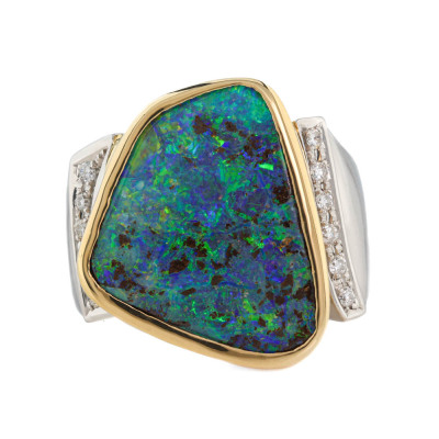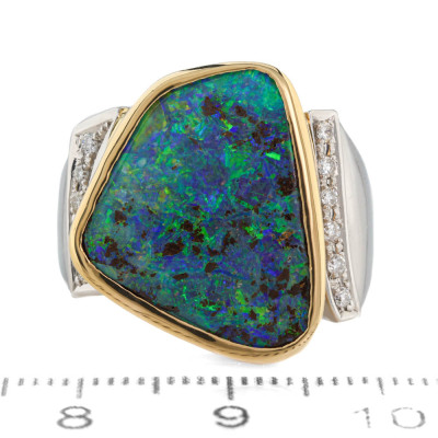 10.91ct Boulder Opal and Diamond Ring