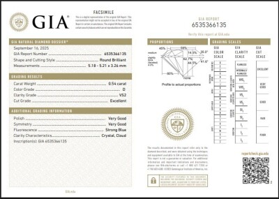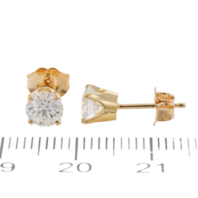 Diamond stud earrings with 2 round brilliant cut Natural Diamonds totalling 1.09ct (with GIA Diamond Dossier Reports graded as D VS2 #1523432944, 6535366135). 18ct yellow gold.