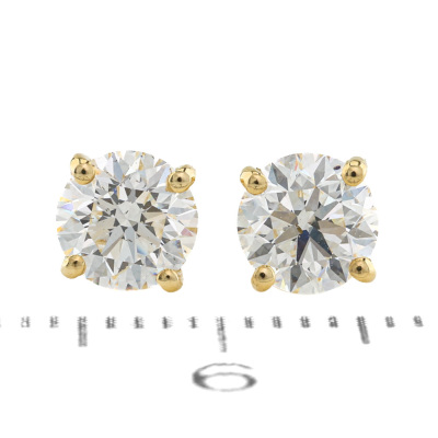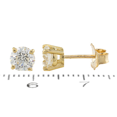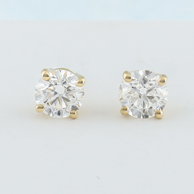 Diamond stud earrings with 2 round brilliant cut Natural Diamonds totalling 1.09ct (with GIA Dossier Reports graded as F SI1 #7516902142, 7511313396). 18ct yellow gold. Weight: 1.1g. (New)