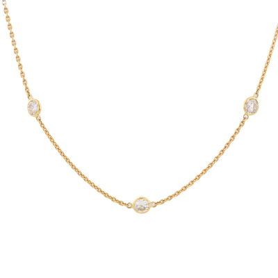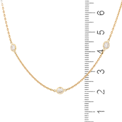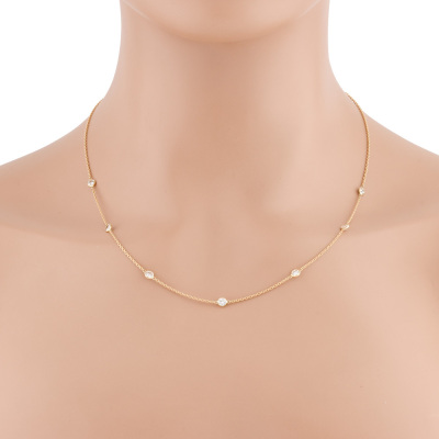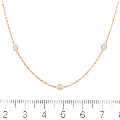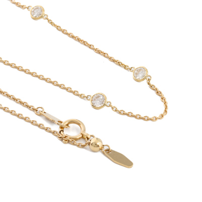 Diamond necklace with 7 round Natural Diamonds totalling 1.10ct (Estimated grading: H-I SI). 18ct yellow gold. Adjustable max length: 48cm. Weight: 2.9g. (Pre-owned)