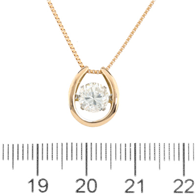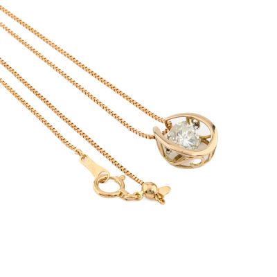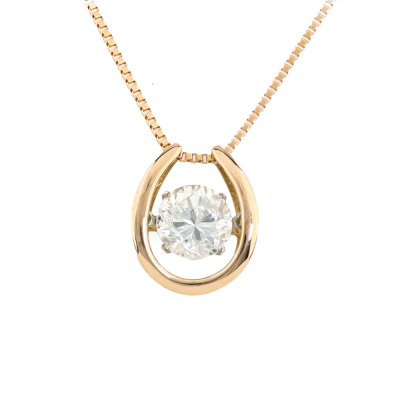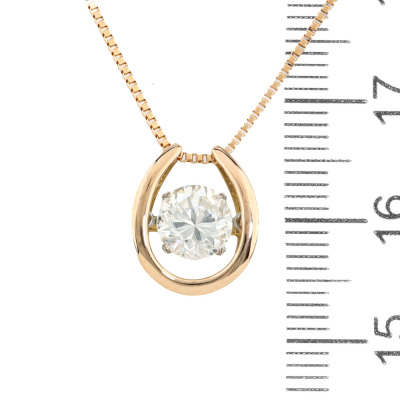 Diamond solitaire pendant with a dancing round brilliant cut Natural Diamond of 1.10ct (Estimated grading: I P1). Platinum - 900 & 18ct rose gold with 45.5cm 18ct rose gold adjustable chain. Weight: 3.1g. (Pre-owned)