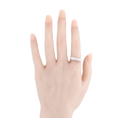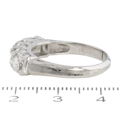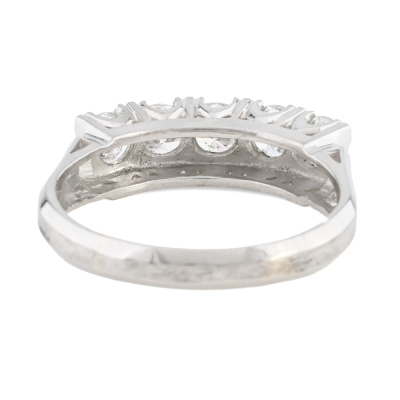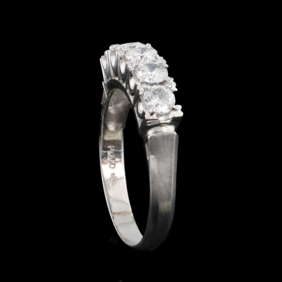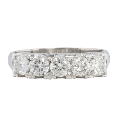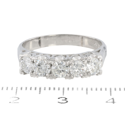 Diamond eternity ring with 5 round Natural Diamonds totalling 1.11ct (Estimated grading: G-H P1). Platinum - 850. Ring size O1/4. Band width: 2.7mm - 3.2mm. Weight: 5.2g. (Pre-owned)