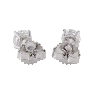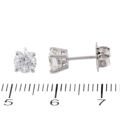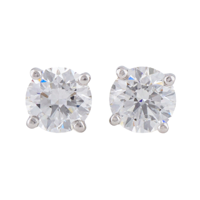 Diamond stud earrings with 2 round brilliant cut Natural Diamonds totalling 1.11ct (with GIA Diamond Dossier Reports graded as D Internally Flawless # #7528440748 & E Internally Flawless # 6531692968). 18ct white gold. Weight: 1.2g.