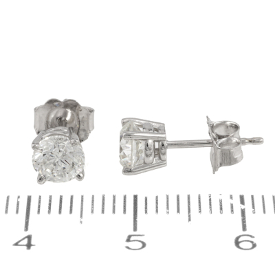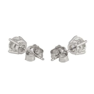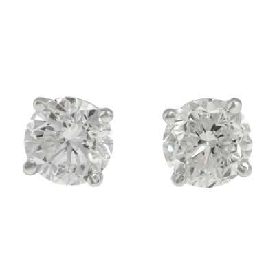 Diamond stud earrings with 2 round brilliant cut Natural Diamonds totalling 1.11ct (Estimated grading: H P1). 18ct white gold. Weight: 1.1g. (New)