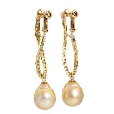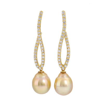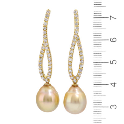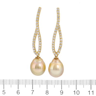 11.1mm Golden South Sea Pearl & Diamond Earrings