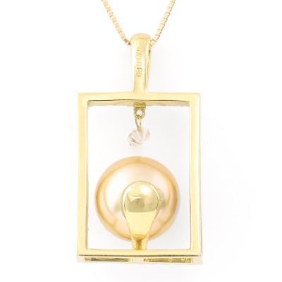 Pearl and Diamond pendant with Golden South Sea Pearl approximately of 11.1mm and round Natural Diamonds totalling 0.60ct (Estimated grading: H-I SI-P1). 18ct yellow gold and 18ct yellow gold 45.0cm chain. Weight: 8.0g. (Pre-owned)