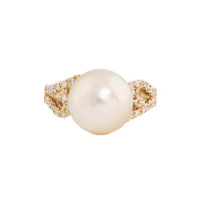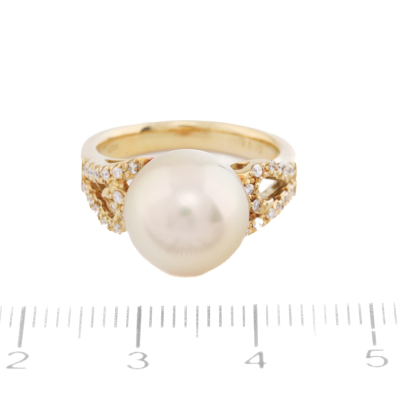 11.1mm South Sea Pearl & Diamond 18ct Gold Ring