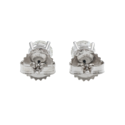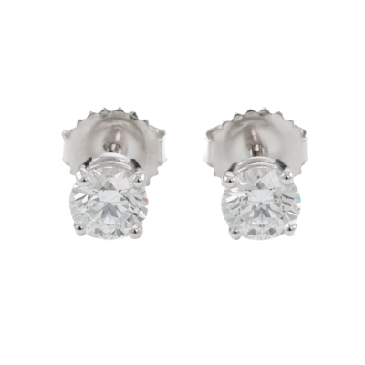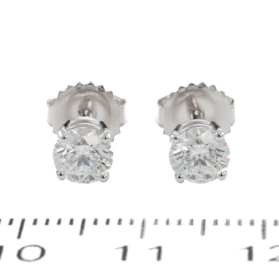 Diamond stud earrings with 2 round brilliant cut Natural Diamonds totalling 1.12ct (with GIA Dossier Reports graded as E VVS1 #6512297820 & F VVS1 #1513605405). 18ct white gold. Weight: 1.3g. (New)