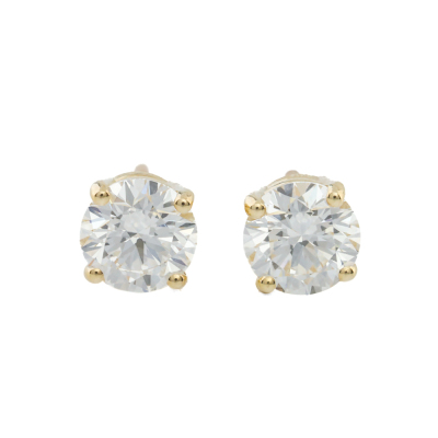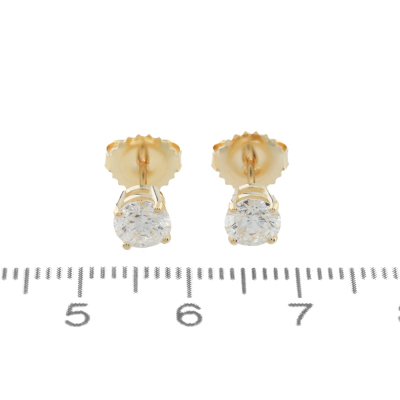 Diamond stud earrings with 2 round brilliant cut Natural Diamonds totalling 1.14ct (with GIA Summary Reports graded as F VVS2 #6511766339 & G VVS2 #6521147669). 18ct yellow gold. Weight: 1.4g. (New)