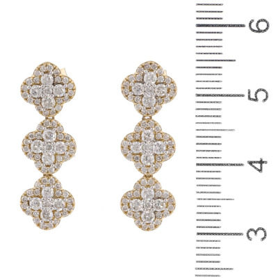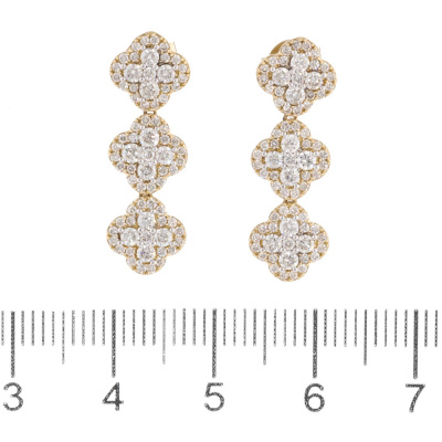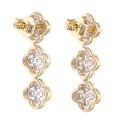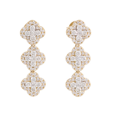 Diamond dress earrings with 150 round Natural Diamonds totalling 1.16ct (Estimated grading: H SI). 14ct yellow gold with 14ct yellow backs. Length: 2.4cm. Weight: 3.5g. (New).