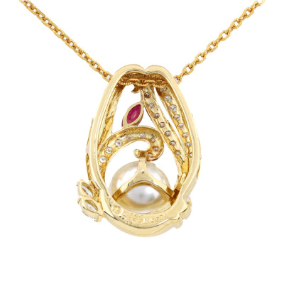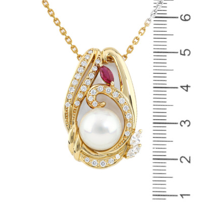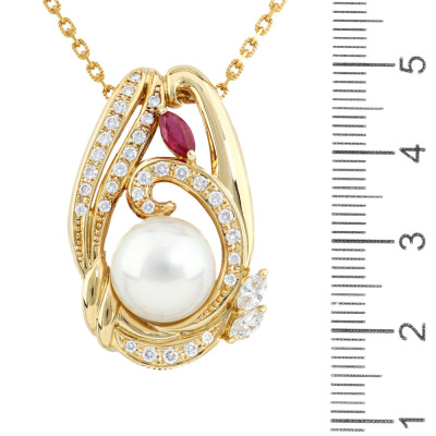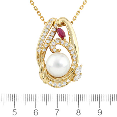 11.6mm South Sea Pearl, Ruby & Diamond Pendant 18ct Gold