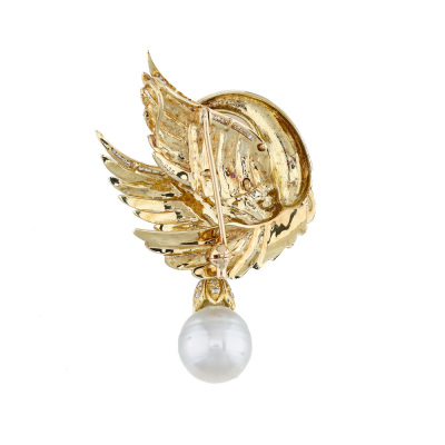 11.7mm South Sea Pearl Swan Brooch, 18ct Gold