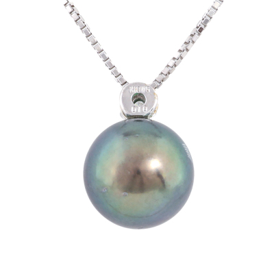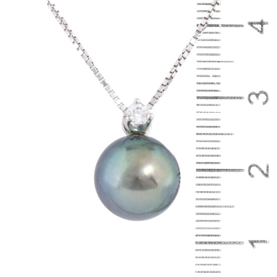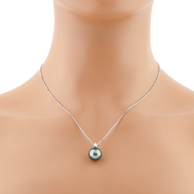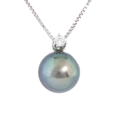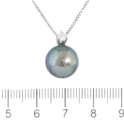 Pearl and Diamond pendant with Tahitian Pearl of 11.7mm and round Natural Diamond of 0.10ct. 9ct white gold bail (XRF tested, stamped 'K18') with 45.5cm 18ct white gold chain. Weight: 6.2g. (Pre-owned)
