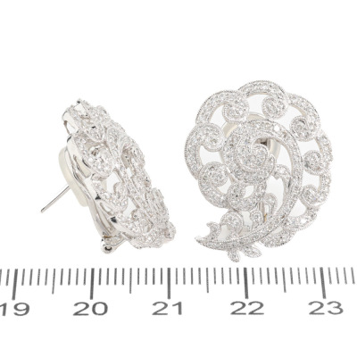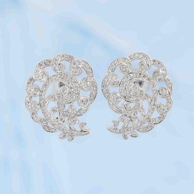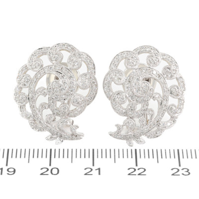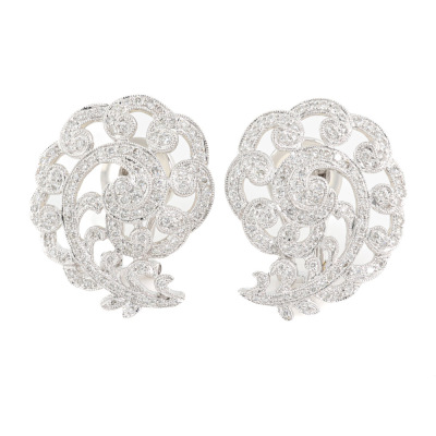 Diamond clip-on earrings (for both pierced & non pierced ears) with round Natural Diamonds totalling 1.18ct (Estimated grading: G-H SI). 18ct white gold. Weight: 12.0g. (Pre-owned)