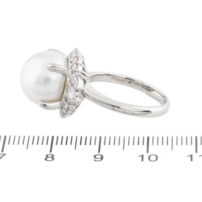 11.8mm South Sea Pearl & Diamond Platinum Ring