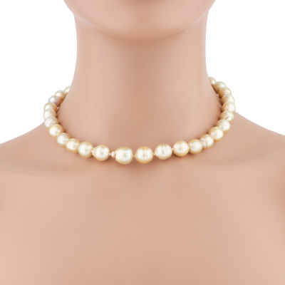 12-10mm Light Golden South Sea Pearl Necklace