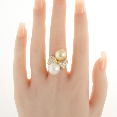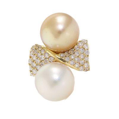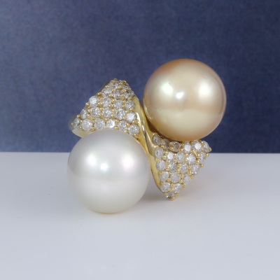 12-12.1mm South Sea Pearls and Diamond Ring