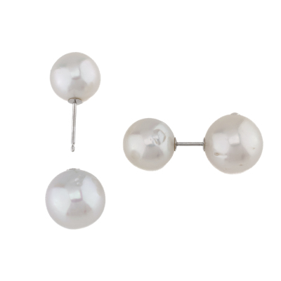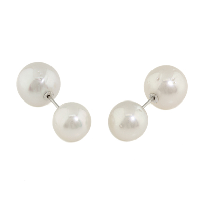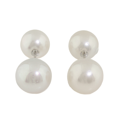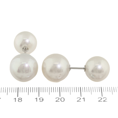 Front-back Pearl earrings with 2 front South Sea Pearls of 12mm & 12.2mm and 2 South Sea Pearls of 13.8mm as earring backs. Platinum - 900. Weight: 13.1g.