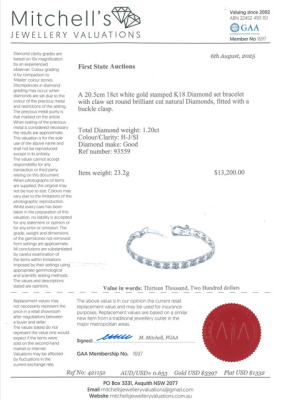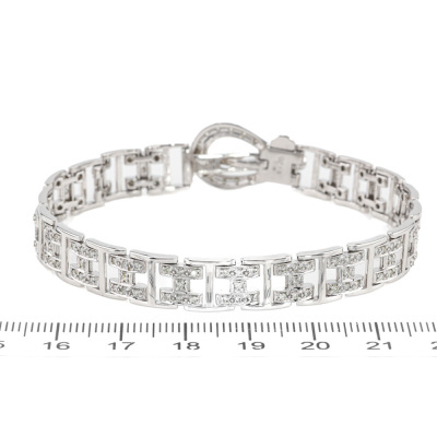 Diamond bracelet with round Natural Diamonds totalling 1.20ct (Estimated grading: H-I SI) and buckle closure. 18ct white gold. Length: 21cm. Wrist size: adjustable max length: 19cm. Weight: 23.2g. With Certificate #421152.