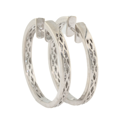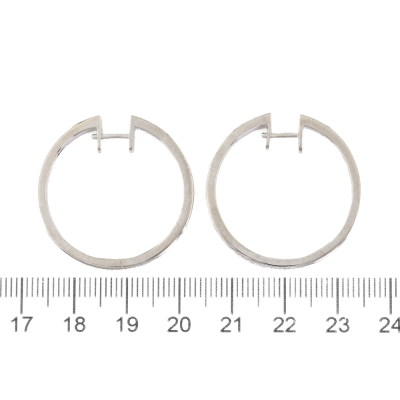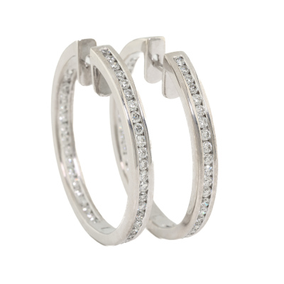 Diamond inside out hoop earrings with round Natural Diamonds totalling approximately 1.20ct (Estimated grading: H-I VS-SI). Diamond set on the inside and outside of hoop. 18ct white gold. Hoop diameter: 3cm. Weight: 11.5g. (Pre-owned)