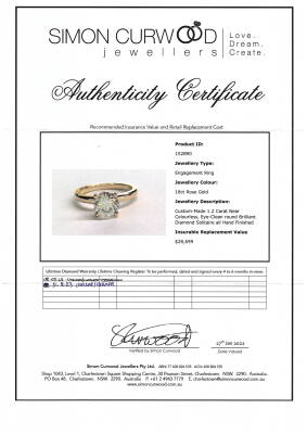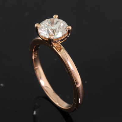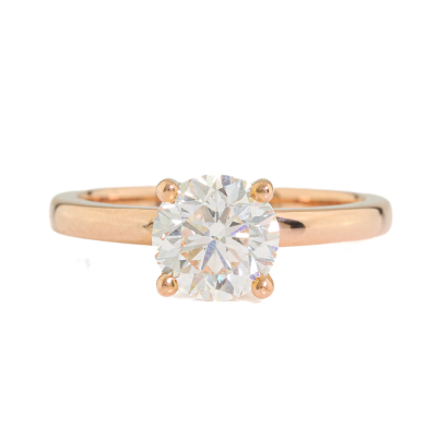 Diamond solitaire ring with round brilliant cut Natural Diamond of 1.20ct (with GIA Report graded as I SI2 #1408656538). 18ct rose gold. Ring size J1/4. Band width: 2mm. Weight: 3.2g. With Authenticity Certificate dated 27/01/22. (Pre-owned)