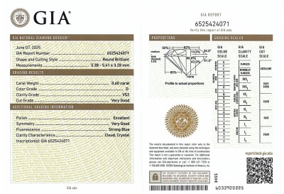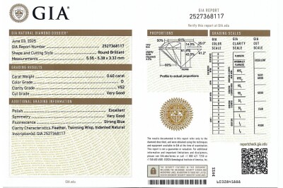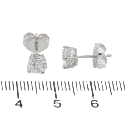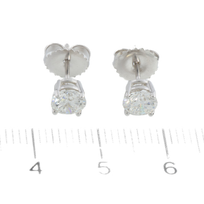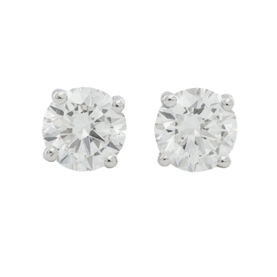 Diamond stud earrings with round brilliant cut Natural Diamonds totalling 1.20ct (with GIA Dossier Reports graded as D VS2 #2527368117, 6525424071). 18ct white gold. Weight: 1.4g. (New)