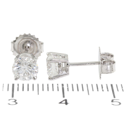 Diamond stud earrings with 2 round brilliant cut Natural Diamonds totalling 1.20ct (with GIA Reports graded as D VS2# 2534231066, 2507504410). 18ct white gold. Weight: 1.3g.