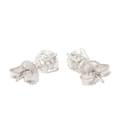 Diamond stud earrings with 2 round brilliant cut Natural Diamonds totalling 1.20ct (with GIA Dossier Reports graded as D VVS2 #2527156975 and E VVS2# 1525152837). 18ct white gold. Weight: 1.4g. (New)