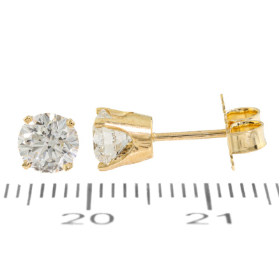 Diamond stud earrings with 2 round brilliant cut Natural Diamonds totalling 1.20ct (with GIA Dossier Reports graded as E SI1 #1527973369, 6522367838). 18ct yellow gold. Weight: 1.5g. (New)
