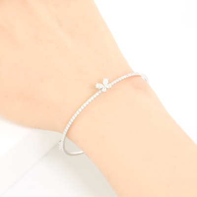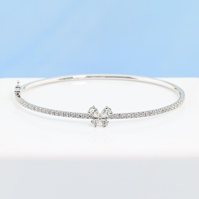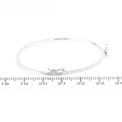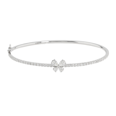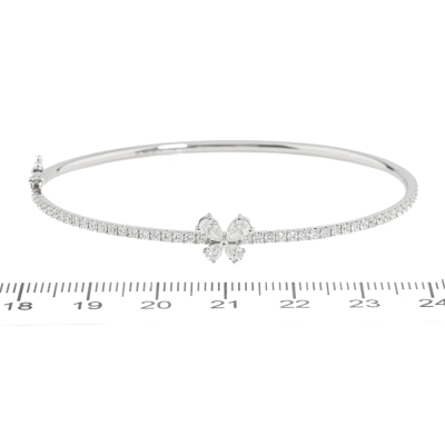 Diamond bangle with round & pear shape Natural Diamonds totalling 1.21ct (Estimated grading: G-H SI). 18ct white gold. Oval shape, Inner circumference: 15.5cm. With Hallmark 'JL'. Weight: 8.0g. (Pre-owned)
