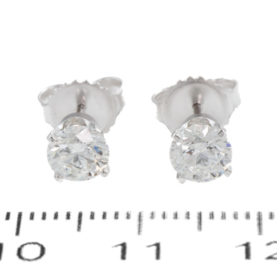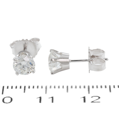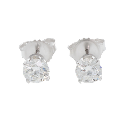 Diamond stud earrings with 2 round brilliant cut Natural Diamonds totalling 1.21ct (with GIA Dossier Reports graded as D VS2 #6522285432, 2526158170). 18ct white gold. Weight: 1.6g. (New)