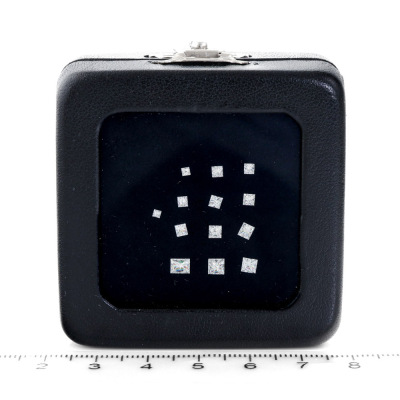 A loose parcel of 13 princess cut Natural Diamonds totalling 1.21ct (Estimated grading: F-G VS-SI). Size approximately 3.8mm x 3.0mm - 1.48mm x 1.51mm. (As new)