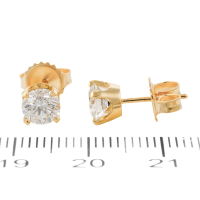 Diamond stud earrings with 2 round brilliant cut Natural Diamonds totalling 1.23ct (with GIA Diamond Dossier Reports graded as E VVS2# 6525182925, 1527369397). 18ct yellow gold