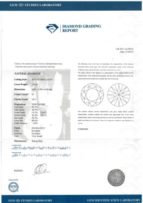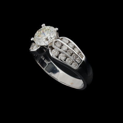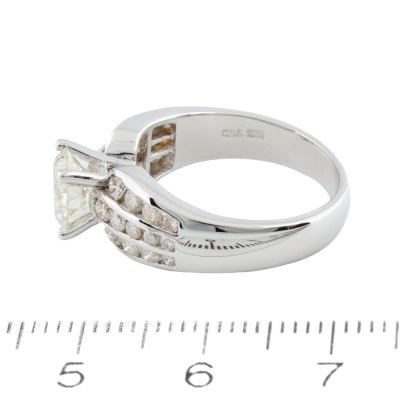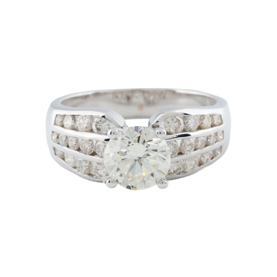 Diamond ring with round Natural Diamond of 1.24ct (With GSL Report graded as M VS1 #AA70630) and round Natural Diamonds totalling approximately 0.70ct (Estimated grading J SI-P1). 18ct white and yellow gold. Ring size: L1/4. Band width: 3.5mm - 5.8mm. Weight: 6.4g.