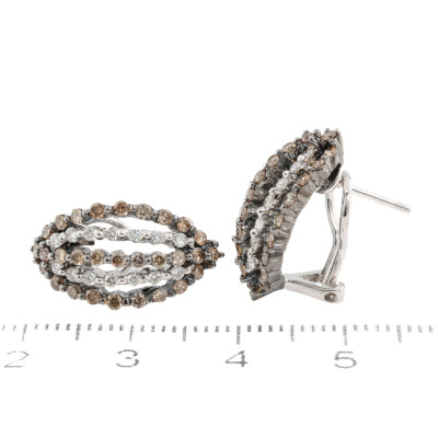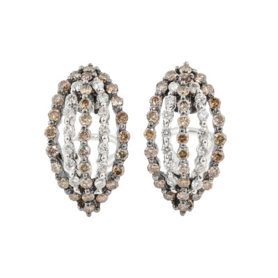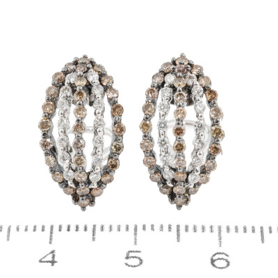 Diamond clip-on earrings (for both pieced and non pieced ears) with round Cognac Natural Diamonds totalling 0.91ct (Estimated grading: Cognac P1-P2) and round Natural Diamonds totalling 0.33ct (Estimated grading: H SI-P1). 18ct white gold. Weight: 6.0g. (Pre-owned)