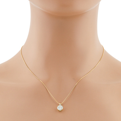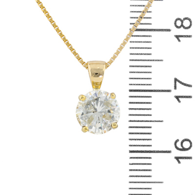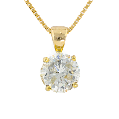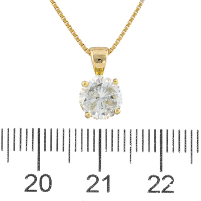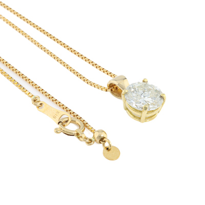 Diamond solitaire pendant with a round brilliant cut Natural Diamond of 1.24ct (Estimated grading: K P2). 18ct yellow gold with 45cm 18ct yellow gold adjustable chain. Weight: 2.9g. (New)