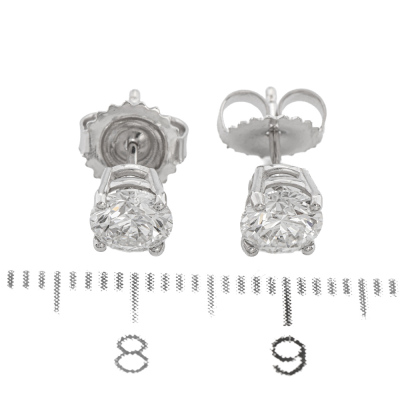 Diamond stud earrings with 2 round brilliant cut Natural Diamonds totalling 1.24ct (with GIA Dossier Reports graded as D Internally Flawless #6511566707 & E Internally Flawless #6233627703