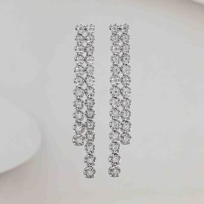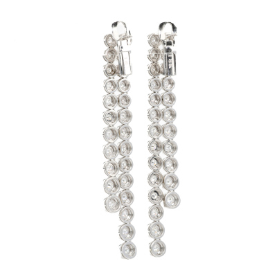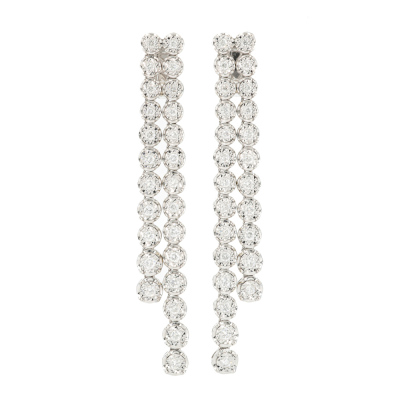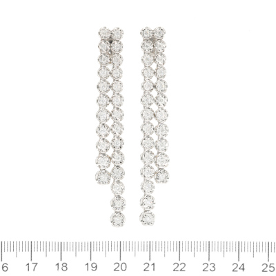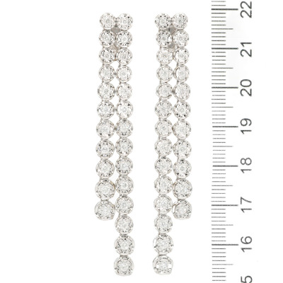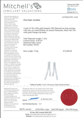 Diamond clip-on earrings (for pierced ears) with round Natural Diamonds totalling approximately 1.25ct (Estimated Grading: G-H VS). 18ct white gold with Omega clip backs. Drop length: 6.5cm. Weight: 14.6g. With Valuation Certificate #421422. (Pre-owned)